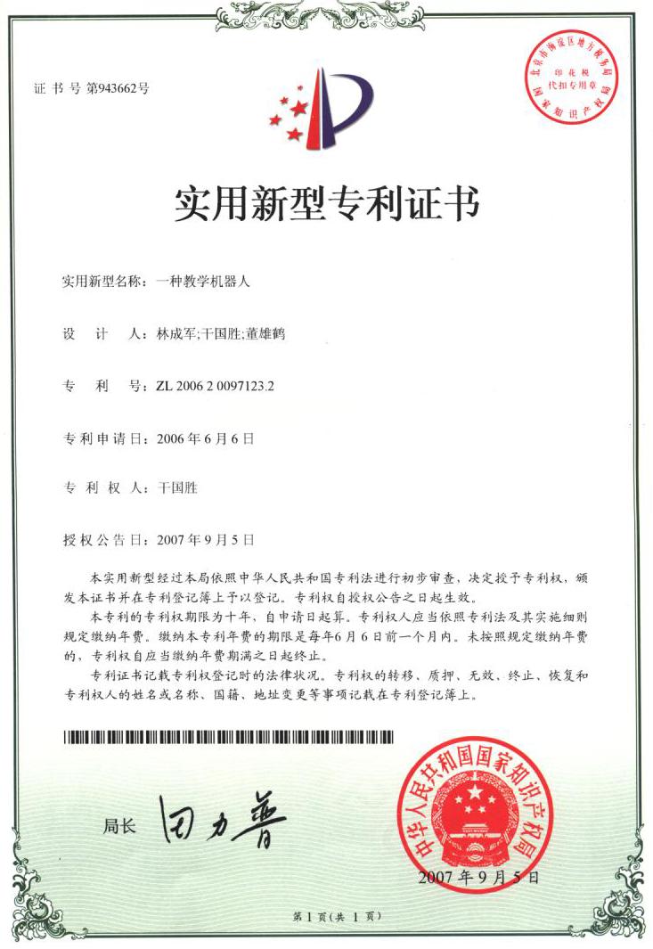 本网讯 (记者 鱼昆 报道)9月5日,国家知识产权局正式授权公告,授予欧冠官网计算机工程系副主任干国胜副教授研制的“一种教学机器人”专利权,并颁发了实用新型专利证书。