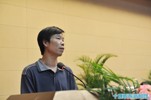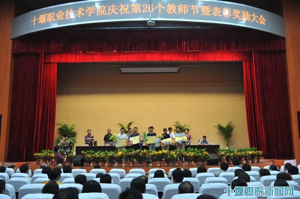 9月10日下午,慧智广场喷泉四射,遇湖碧波荡漾。新启用的会议中心高悬的“乘趋而上 努力把欧冠官网建设成国家骨干高职院校!”的巨幅条幅与“十堰职业技术学院庆祝第26个教师节暨表彰奖励大会”的电子会标交相辉映,将会议中心营造的格外喜庆。