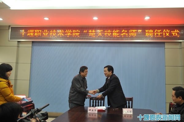 副院长张德新主持聘任仪式并介绍了相关情况。截止目前,学院共获批10个设岗专业,聘任了10名“楚天技能名师”。按照省教育厅规定,学院与评审通过的“楚天技能名师”签订聘任合同,除此之外,学院还为“楚天技能名师”选配了工作助理,配置专门的工作室,为“楚天技能名师”在校工作提供全方位的保障。