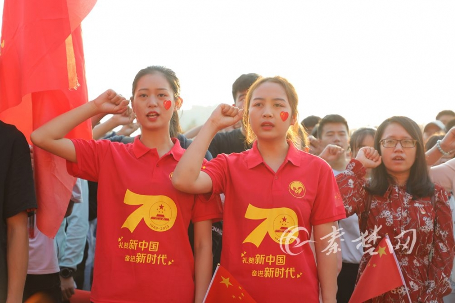 随后,诗朗诵《大国重器》、重温入团誓词、唱团歌等环节一一进行,现场5000余名师生共同合唱起《我和我的祖国》,嘹亮的歌声在湖工职院上空久久回荡,不禁让人热血沸腾。