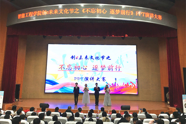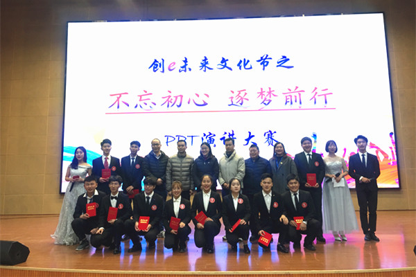 新闻网讯(通讯员赵晨)“青春有得意,也有挫折,只有经过磨难的洗礼,才能迸发出青春的潜力……”12月6日晚,欧冠中文官网创e未来文化节之“不忘初心,逐梦前行”PPT演讲大赛在会议中心举行,欧冠中文官网院长刘竹林、党总支书记莫足琴、学工办主任龚国钧、专业带头人范志庆和王家旭老师、美和易思特色专业学工部副主任曹艳及2019级全体师生参与了本次活动。