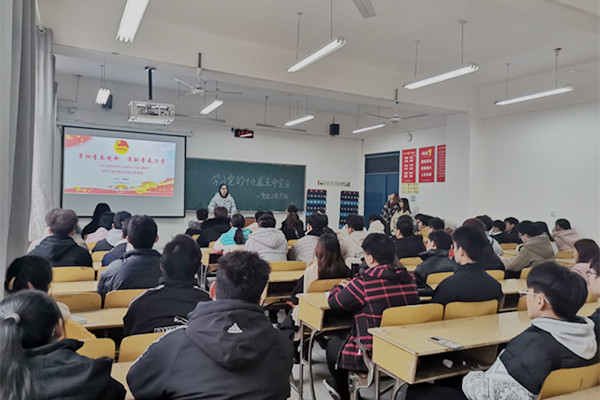 新闻网讯(文/郑丽琼图/徐驰)为深入学习宣传党的十九届五中全会精神,12月3日,欧冠中文官网分团委在4403教室开展了“勇担青春使命 贡献青春力量”主题团课活动。此次团课由分团委书记郑丽琼老师主讲,2019级、2020级各班团支书和学生代表70人参加本次活动。