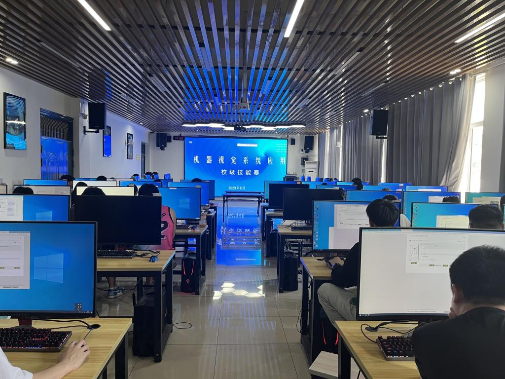 新闻网讯(通讯员 贺琼 王俊亚)为进一步提升学生专业技能,巩固实训教学成果,促进专业实践教学与人才培养模式改革,欧冠中文官网于6月25日下午举行了“机器视觉系统应用”“集成电路开发与应用”技能竞赛。其中“机器视觉系统应用”赛项参赛选手主要来自人工智能技术应用、电气自动化技术21级在校生,前期经过培训和选拔,最终遴选28组共56人参加比赛,参赛选手通过协作完成比赛任务,竞赛内容紧密贴合“可编程控制器系统应用编程”1+X证书实操考核内容以及省赛“机器视觉系统应用”赛项任务及要求。