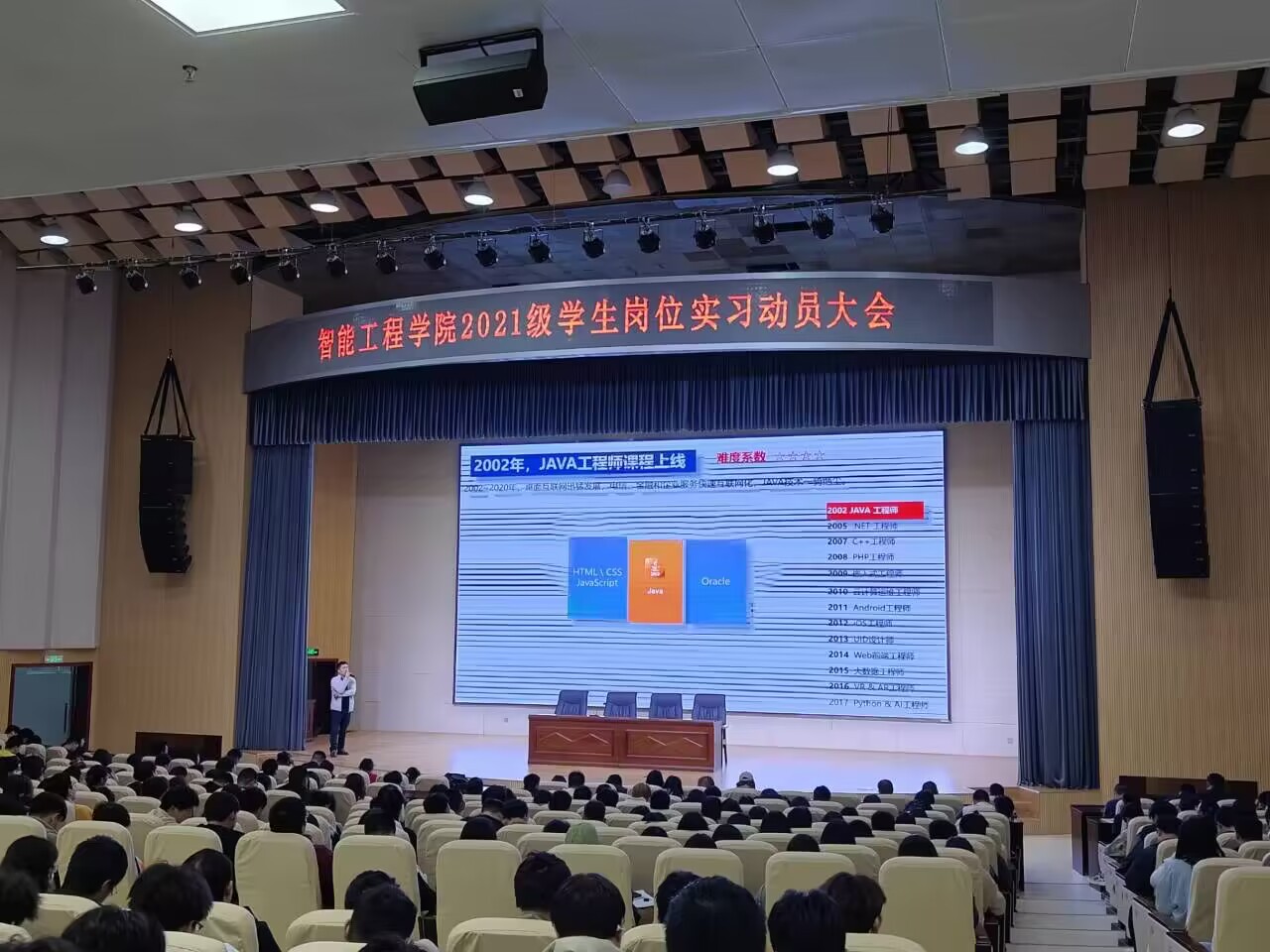 欧冠中文官网党总支书记王蓉对此次实习做了动员讲话,明确了岗位实习的任务、目的和意义,强调岗位实习的注意事项,提醒学生注意自身安全、岗位安全、防诈骗、防网络犯罪、防溺水等,并要求全体实习学生充分利用好这次实习机会,在实践中学习成长,严格按照岗位实习要求,高标准、高质量地完成实习任务。副院长王家旭宣布了2021级学生岗位实习安排,从岗位实习任务、实习纪律、实习考核等方面进行了安排和要求。来自智能科技、电子等企业的招聘人员现场进行了宣讲,将岗位实习的具体要求、待遇和注意事项进行了详细的介绍和说明。
