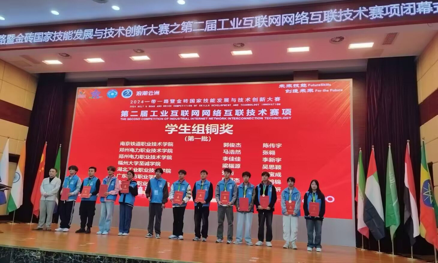新闻网讯(通讯员 戴敏)11月7日-10日,2024一带一路暨金砖国家技能发展与技术创新大赛第二届工业互联网网络互联技术赛项全国总决赛在芜湖职业技术学院成功举办,欧冠官网欧冠中文官网廖天乐、郑紫妍、唐宝成、张衡四位学生组成的两支参赛队,与来自全国各省、直辖市及自治区的115支代表队同台竞技,经过4小时的激烈角逐,最终双双荣获高职组铜奖。