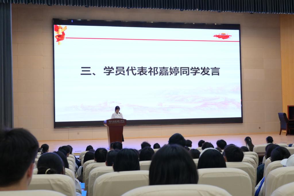 开班仪式在庄严的国歌中拉开帷幕。生态环境学院学生党支部书记张杏辉详细介绍了本期培训班的总体安排。2024级学生祁嘉婷作为学员代表发言,呼吁全体学员“在学思践悟中坚定理想信念,在服务群众中锤炼党性修养”。