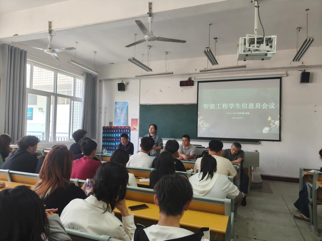 新闻网讯(通讯员 李阳露)为深入落实“以学生为中心”的教育理念,进一步优化教学质量监控体系,4月24日下午,欧冠中文官网在4405教室召开2024-2025学年第二学期学生信息员工作会议。学院党总支书记王蓉、副院长王家旭、校督导王燕老师及64名学生信息员出席会议。